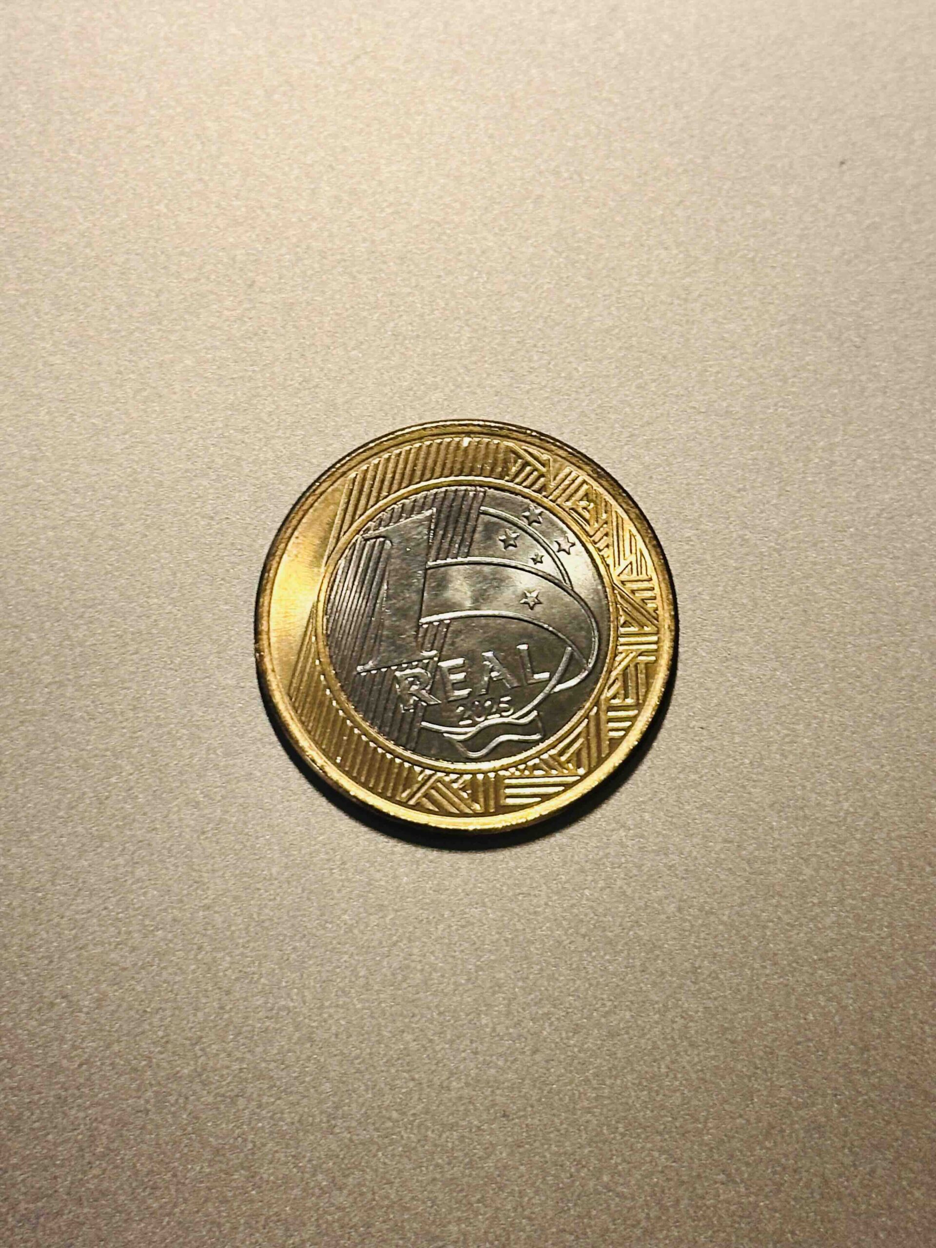 A Brazilian 1 Real coin, instantly recognizable with its distinctive bimetallic design. As the nation’s primary unit of currency, it carries both practical value and cultural significance. The circulated marks reflect its journey through Brazil’s markets, hands, and history — making it a collectible piece of everyday Brazilian life.
