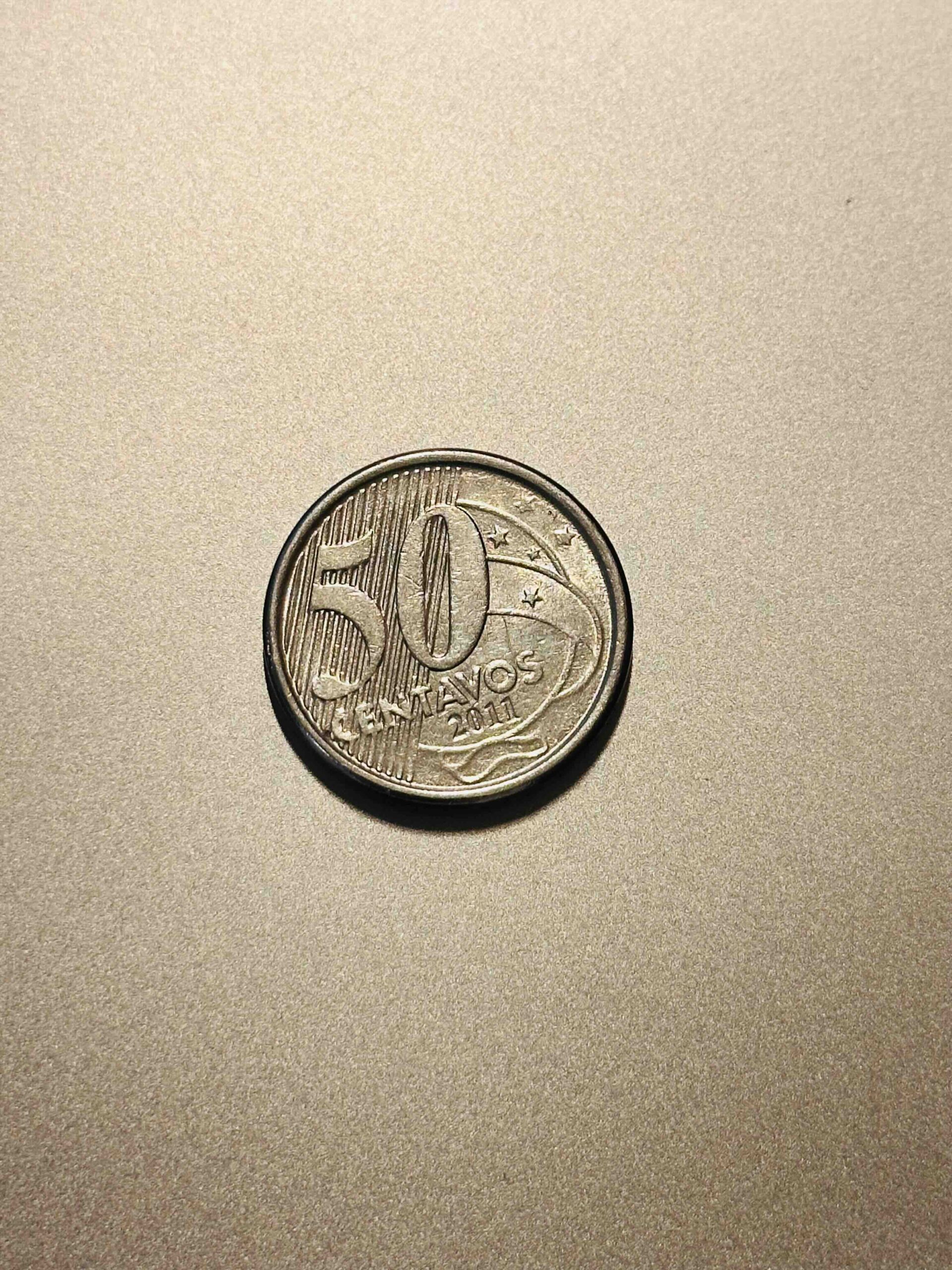 A Brazilian 50 Centavos coin, carrying the nation’s identity through its detailed and practical design. The circulated surface reveals the marks of countless transactions, making it more than currency — it’s a witness to Brazil’s economic rhythm. A balanced collectible that blends everyday function with historical value.