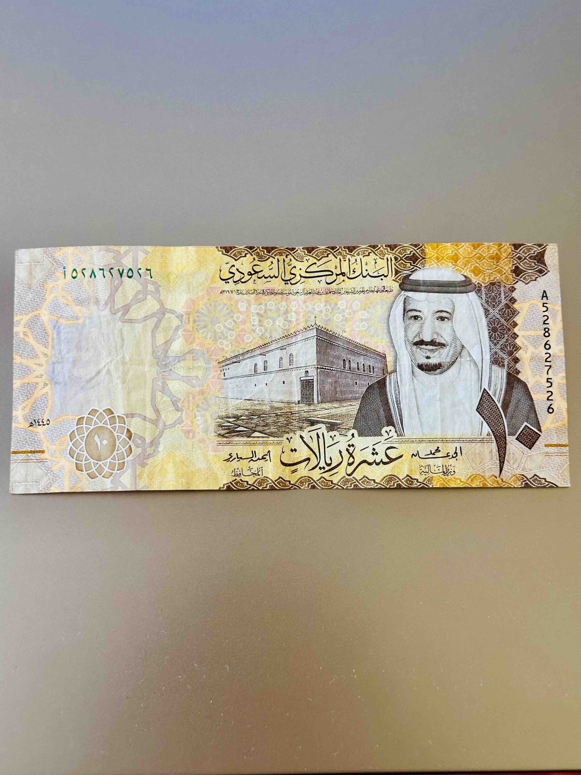 Golden ochre and deep brown tones give the 10 Riyals note a stately warmth β€” much like the Arabian sands it honors. Adorned with a portrait of the King and intricate patterns inspired by Islamic artistry, it feels at once historical and contemporary. Folds and faint marks speak of countless exchanges β€” from roadside coffee stops on the Hijaz Highway to merchants in Jeddah’s souks. Elegant yet grounded, the note carries the essence of Saudi Arabia’s enduring pride and hospitality.