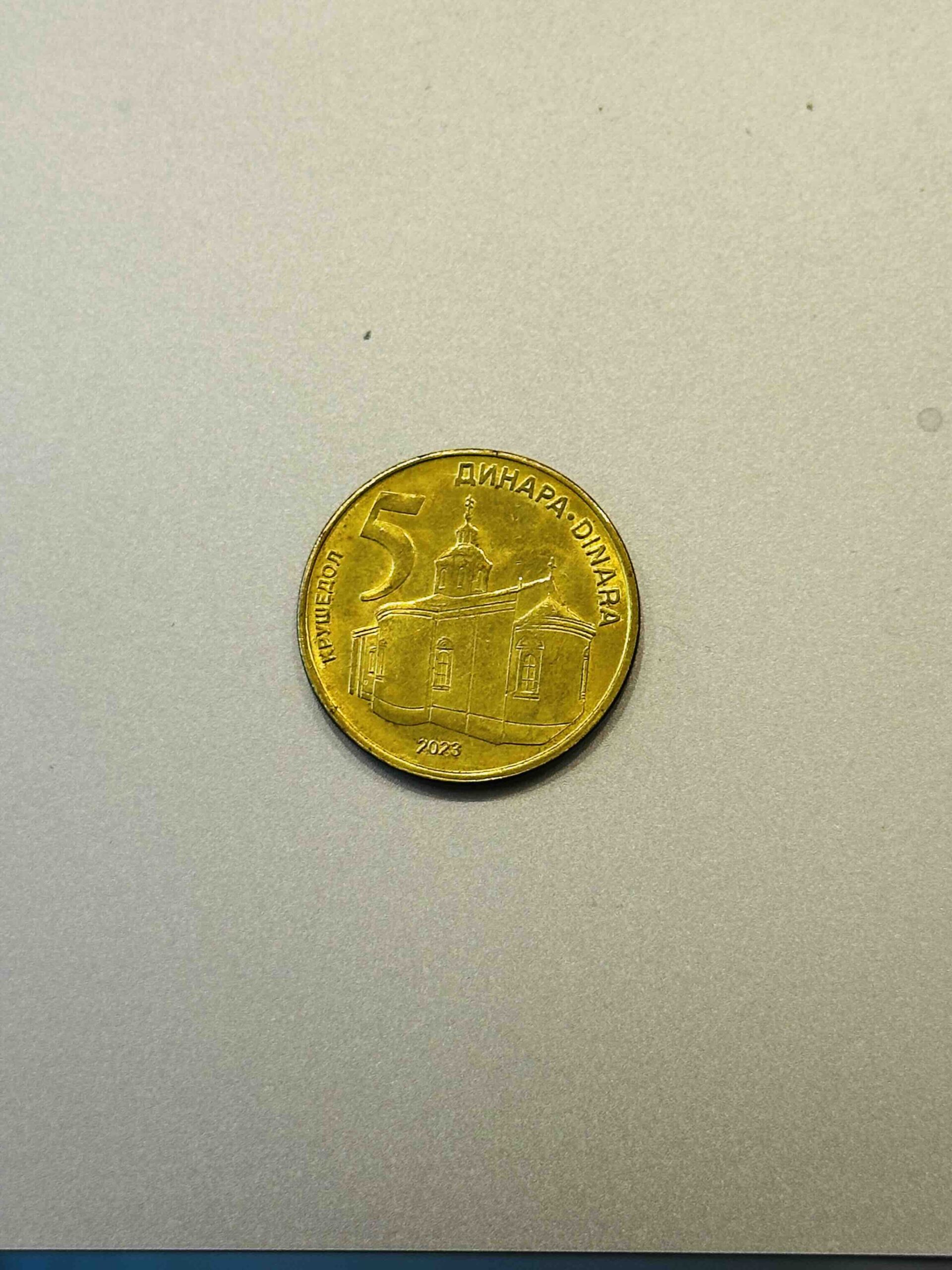 The 5 Dinara coin features strong Serbian lettering and emblematic elements. Distinct and practical, it represents Serbia’s modern currency with a traditional feel.