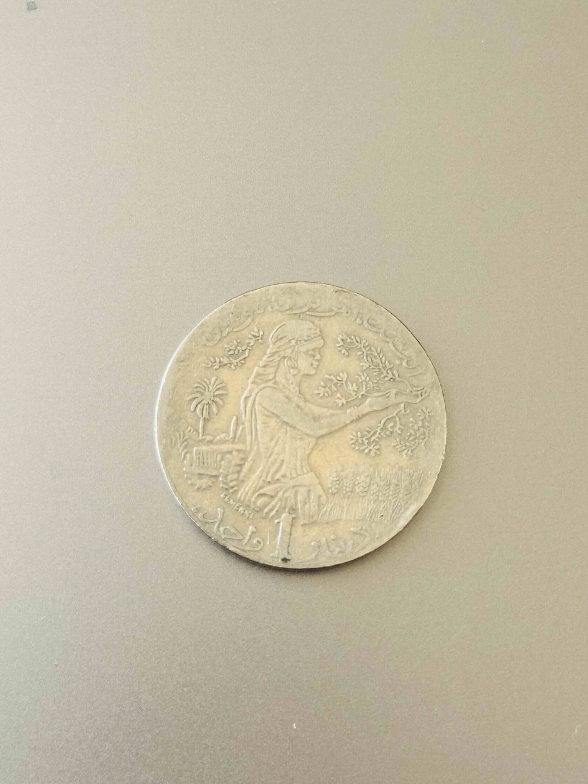 A sturdy Tunisian 1 Dinar coin, reflecting the nation’s strength and cultural blend. Featuring the emblem of Tunisia — the crescent and star within a shield — it symbolizes independence, unity, and pride. The bimetallic design gleams with a contrast of silver and gold tones, representing the meeting of desert and sea that defines Tunisia’s landscape. Its weight and texture carry the touch of countless everyday exchanges — from seaside cafés in Sousse to the bustling souks of Tunis. A simple yet elegant reminder of Tunisia’s enduring identity and the hands that keep its story in motion.