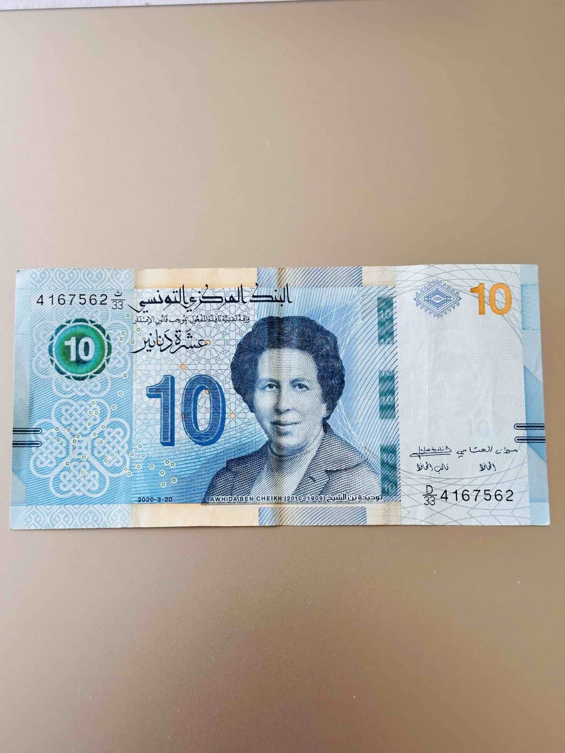 A striking Tunisian 10 Dinars banknote, rich with the colors and history of North Africa’s crossroads. Featuring the portrait of Abou El Kacem Chebbi, the beloved poet whose verses inspired generations, the note captures Tunisia’s enduring spirit of art and revolution. Detailed geometric patterns and palm motifs echo the nation’s blend of Arab, Berber, and Mediterranean influences. Its deep tones of blue and orange mirror the Sahara’s sunset and the Mediterranean’s calm. Each fold tells of bustling souks, coastal breezes, and the unbroken rhythm of Tunisian life — a small yet powerful reflection of a proud and poetic nation.