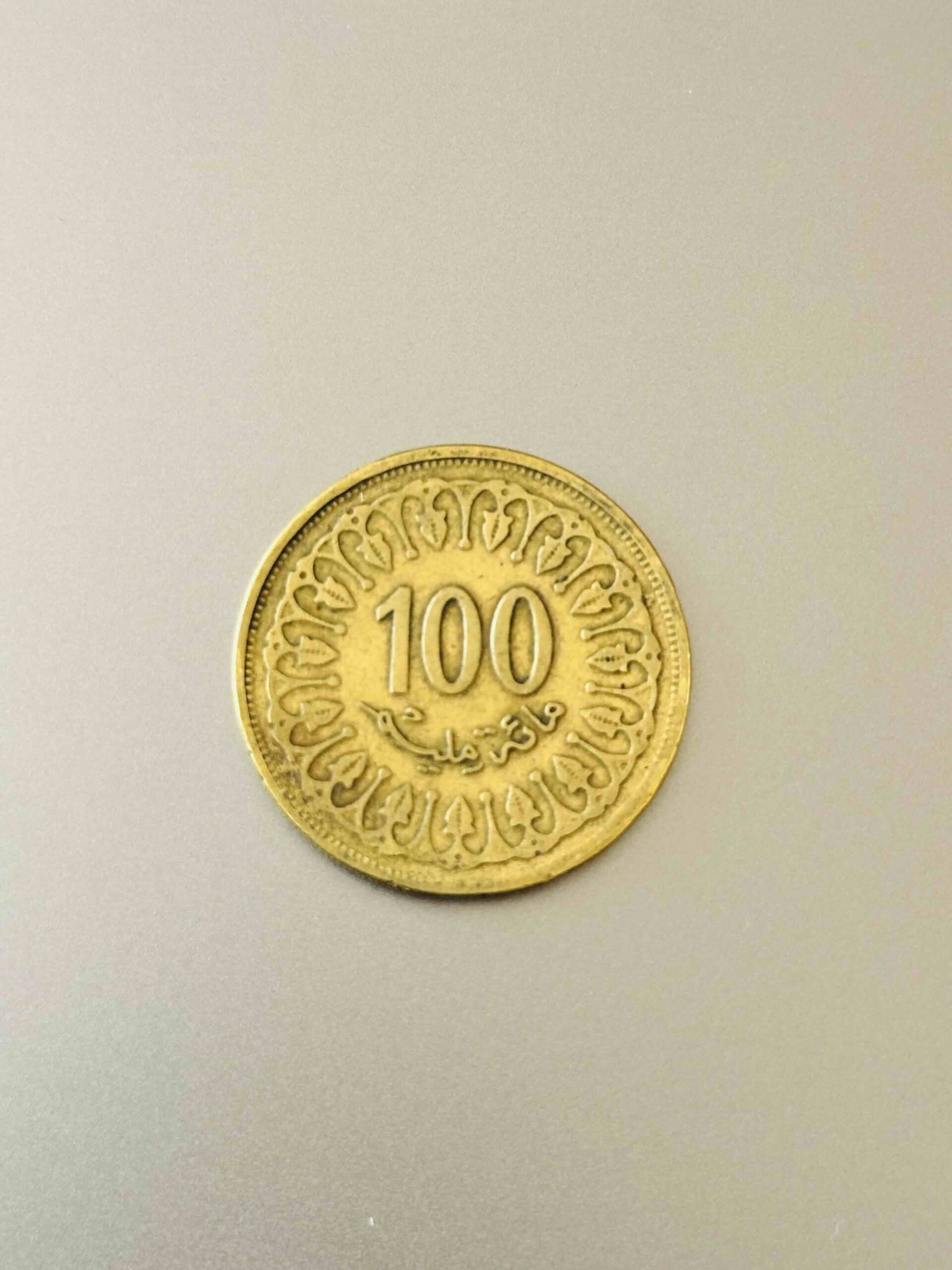 A bright Tunisian 100 Millimes coin, small in size yet rich in detail and heritage. Cast in warm golden tones, it often features intricate arabesque patterns and the proud national emblem — the crescent and star — symbolizing Tunisia’s unity and enduring spirit. Its modest value makes it one of the most familiar coins in daily life, exchanged in markets, cafés, and corner shops across the country. The soft patina and faint scratches whisper of countless hands and everyday stories — a humble but beautiful reflection of Tunisia’s timeless charm and the rhythm of its people.
